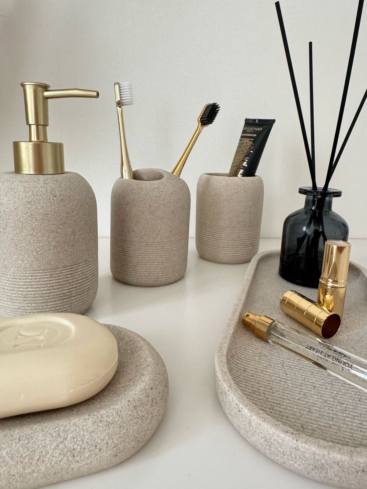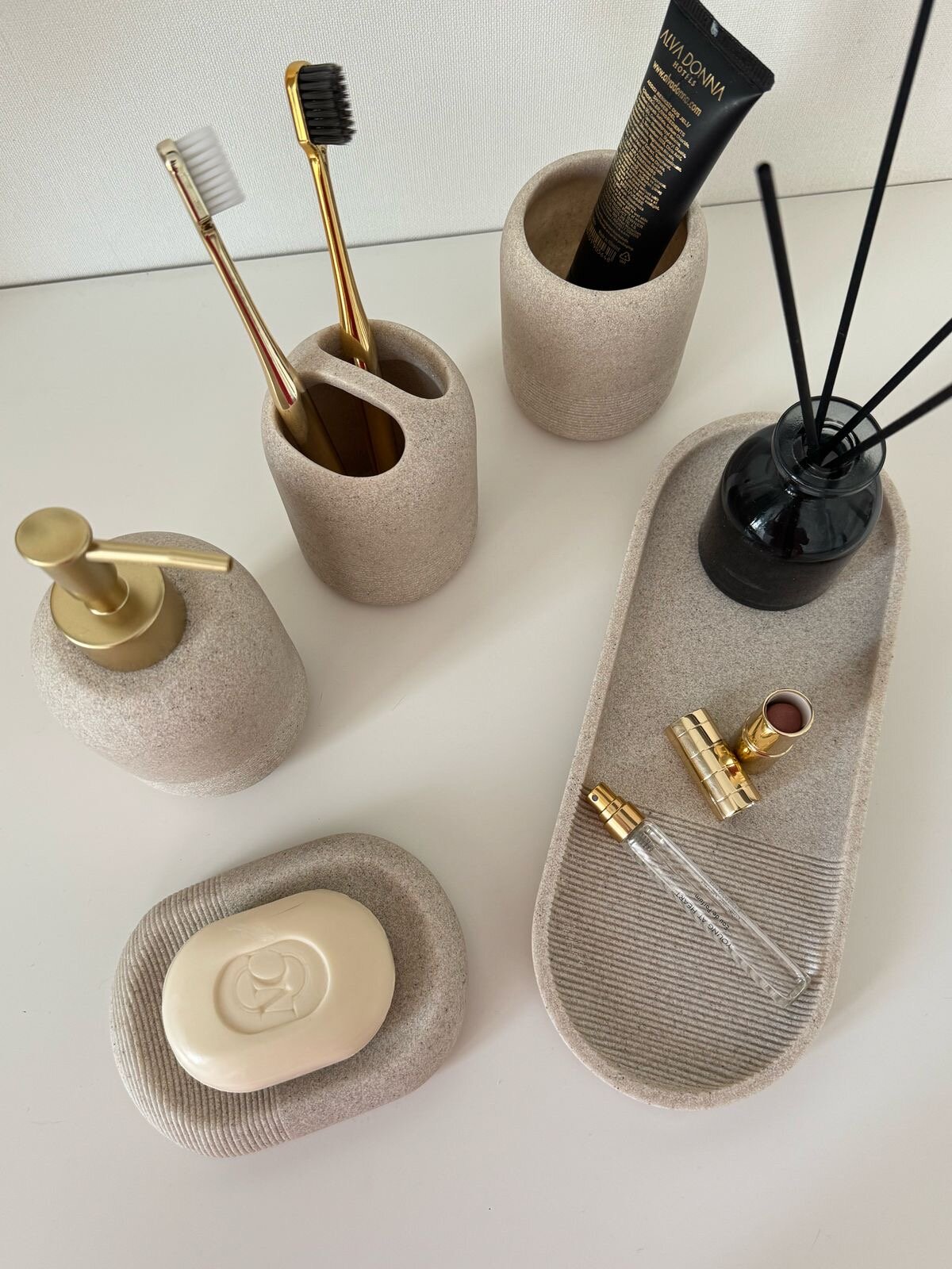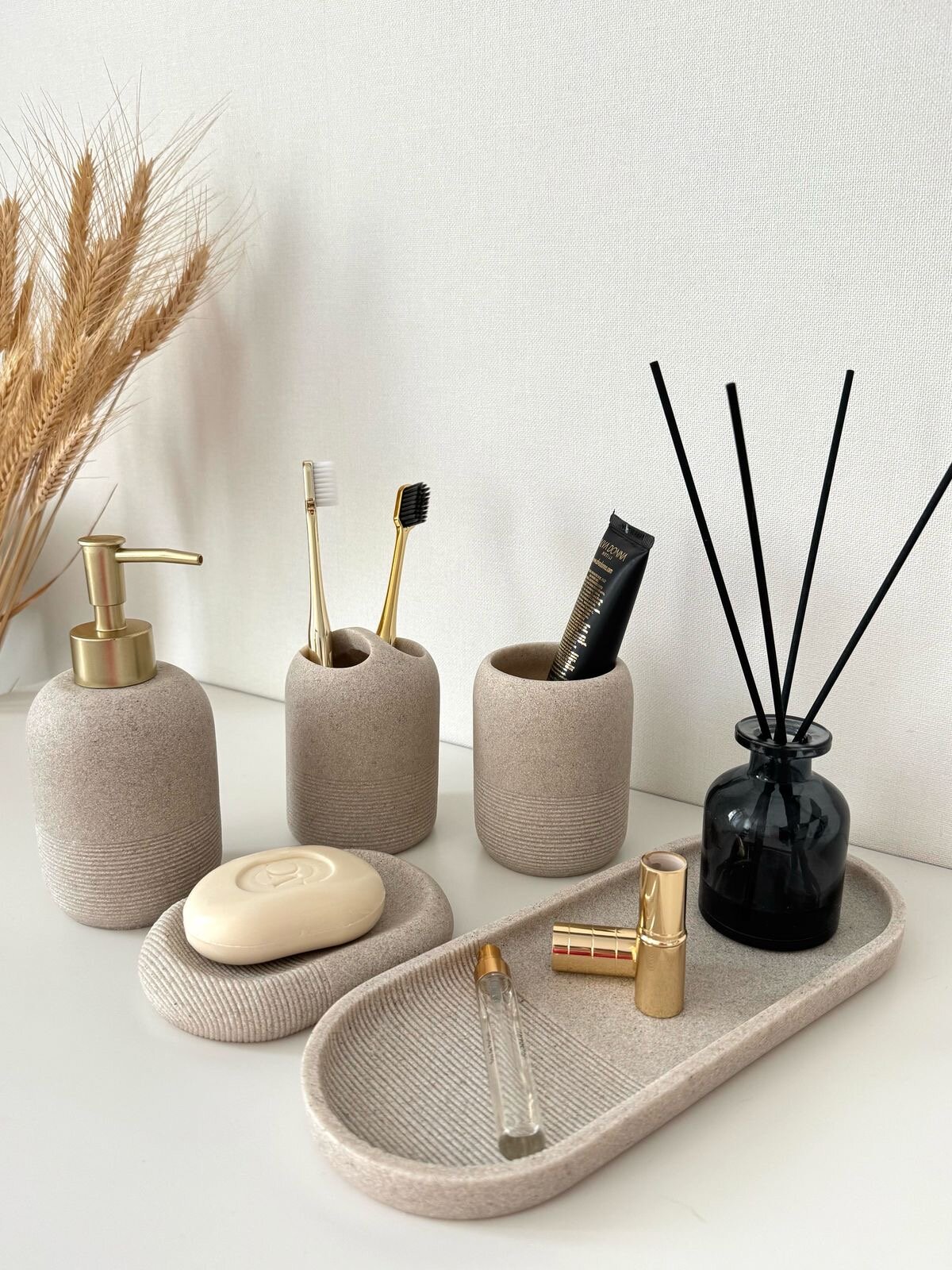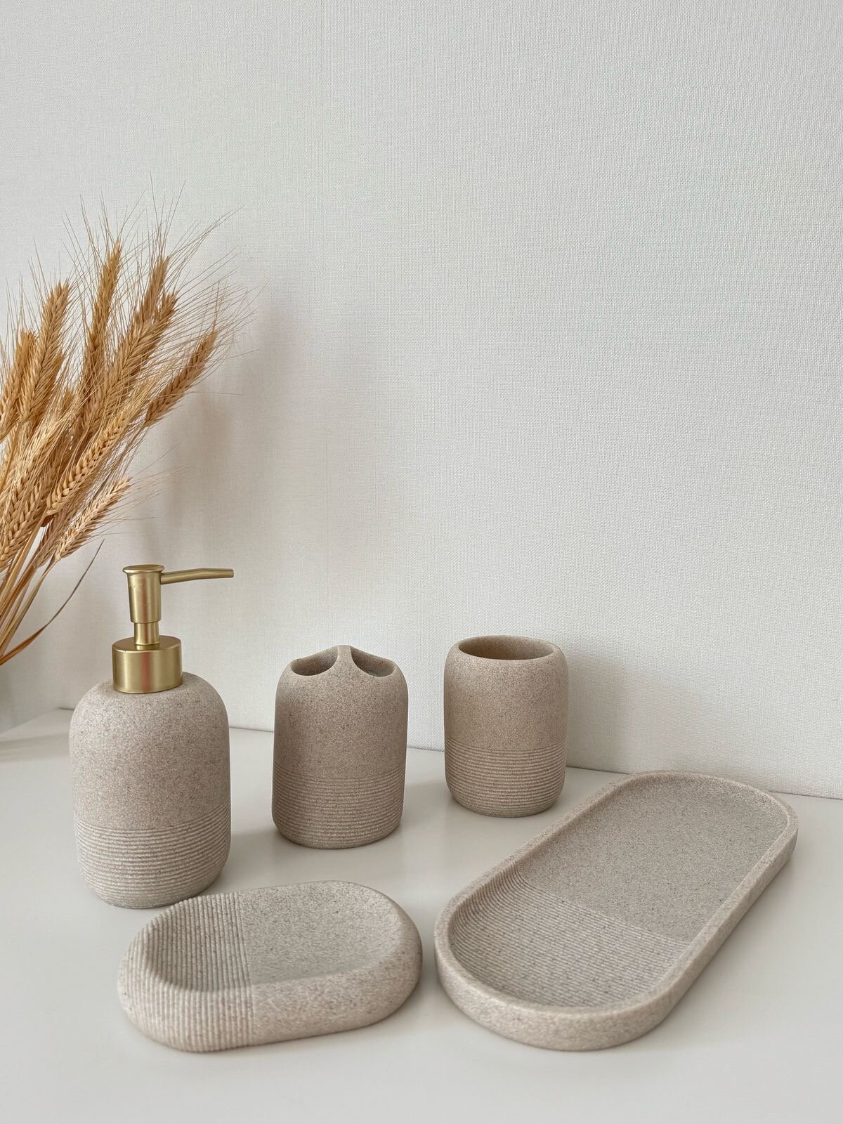 Набор аксессуаров для ванной комнаты, 5 предметов, бежевый камень с золотом: сравнение цен, характеристики, фото, актуальное наличие и цены.