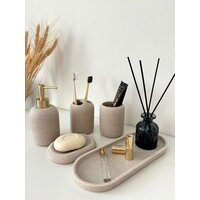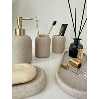 Купить Набор аксессуаров для ванной комнаты, 5 предметов, бежевый камень с золотом с доставкой по всей России.