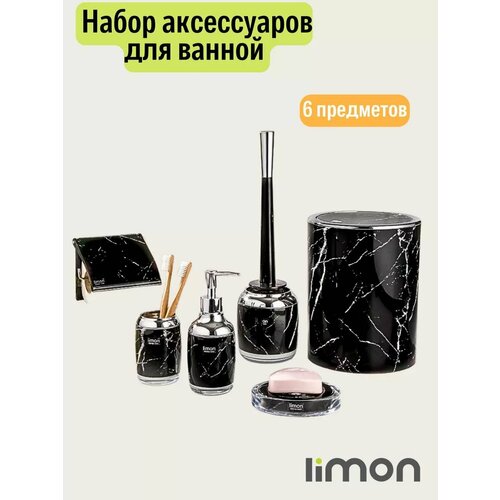 Стильный набор для ванной комнаты и туалета из мусорного ведра, ершика на подставке, мыльница, дозатор для жидкого мыла а также держатель для туалетной бумаги, от известного иранского бренда Limon отлично впишется в интерьер любой современной ванной комнаты или туалета и будет радовать Вас своим дизайном, качеством и удобством в использовании. Компания Limonware уделяет особое внимание качеству и дизайну своей продукции. Набор аксессуаров для ванной комнаты изготовлен из высококачественного абс пластика и акрила. Ведро для мусора имеет объем 5,5л. 19х19х25см. высота ершика 38см. размер подставки 9х9х13см. Поверхность поставки для ершика и ведро глянцевые, визуально смотрятся как стеклянные. Ершик для унитаза сборный, состоит из трех закручивающихся частей, что позволяет менять щетку при необходимости. Ведро для мусора можно использовать не только в ванной комнате, туалете, но и на кухне и в офисе. Крышка ведра открывается от легкого прикосновения. Набор аксессуаров для ванной комнаты и туалета в красивой подарочной упаковке- отличный подарок как для себя, так и для родных и близких на любой праздник и событие! Приятных Вам покупок! Мусорное ведро и ершик на подставке для ванной комнаты и туалета , ершик на подставке для унитаза , мусорное ведро для туалета , маленькое мусорное ведро для кухни , ершик для туалета , мусорное ведро в ванную комнату , аксессуары для ванной комнаты , аксессуары для туалетной комнаты , мусорное ведро , маленькое ведро для мусора .