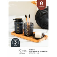 Набор аксессуаров для ванной комнаты Atmosphere of Art «Gloss» / стекло/ 3 предмета/ черный: сравнение цен, характеристики, фото, актуальное наличие и цены.