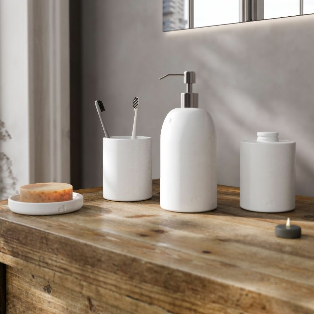 Набор аксессуаров для ванной комнаты есть в каждой локации. Где-то незаметно стоит в углу, где-то на самом видном месте, куда не глядя можно дотянуться. Представьте, что едва проснувшись утром, вы завариваете кофе и заходите в ванную комнату. В большом зеркале видите свое утреннее отражение, предметы интерьера, небольшой и аккуратный набор Bordeaux для ванной комнаты. Выполненный компанией de coore из архитектурного бетона ручной работы, исполненный с трепетом для вашего быта поутру в ванной комнате или незадолго до сна перед принятием горячей ванны после рабочего или насыщенного событиями вечера. Размеры:• Дозатор: 9x9x22.5см, 500мл• Стакан: 9x9x11см• Контейнер с крышкой: 9x9x12см• Мыльница: 13x13смКомплект принадлежностей для ванной представлен в трех спокойных, словно зимнее небо, цветах - белый, словно тяжёлое одеяло вашей постели, с которой вы встали поутру - серый, идеально подходящий под спокойные тона вашей ванной комнаты темно - серый, универсальный, словно маленькое чёрное платье Коко Шанель для любого важного мероприятия. Каждое изделие комплекта аксессуаров для ванной комнаты покрыто специальным водоотталкивающим лаком, а также в комплекте идут силиконовые накладки. Изделие выдержит повреждения, неловкое столкновение, спонтанные переезды, постоянное использование. Каждый предмет для ванной комнаты можно приобрести как вместе, так и отдельно. Стакан для зубных щёток и пасты, контейнер для ватных палочек и дисков или для любых небольших важных для вас вещей, мыльница, дозатор для любимого жидкого мыла. Мы упакуем его так, что изделие приедет к вам в идеальном состоянии, даже если ему предстоит проехать в рюкзаке курьера долгие километры, пересаживаться из одной машины в другую, в теплом климате или в суровые морозы. Открыв коробку вы увидите именно то, чего ожидали. Компания de coore продумала все необходимые мелочи для вашей красивой жизни.