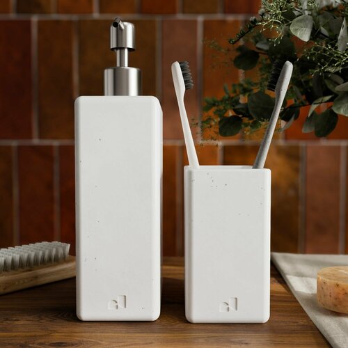 Набор аксессуаров для ванной комнаты есть в каждой локации. Где-то незаметно стоит в углу, где-то на самом видном месте, куда неглядя можно дотянуться. Представьте, что едва проснувшись утром, вы завариваете кофе и заходите в ванную комнату. В большом зеркале видите свое утреннее отражение, предметы интерьера, небольшой и аккуратный набор Oxford для ванной комнаты. Выполненный компанией de coore из архитектурного бетона ручной работы, исполненный с трепетом для вашего быта поутру в ванной комнате или незадолго до сна перед принятием горячей ванны после рабочего или насыщенного событиями вечера.