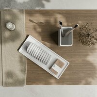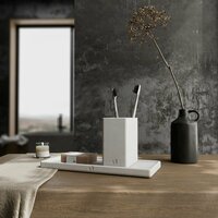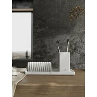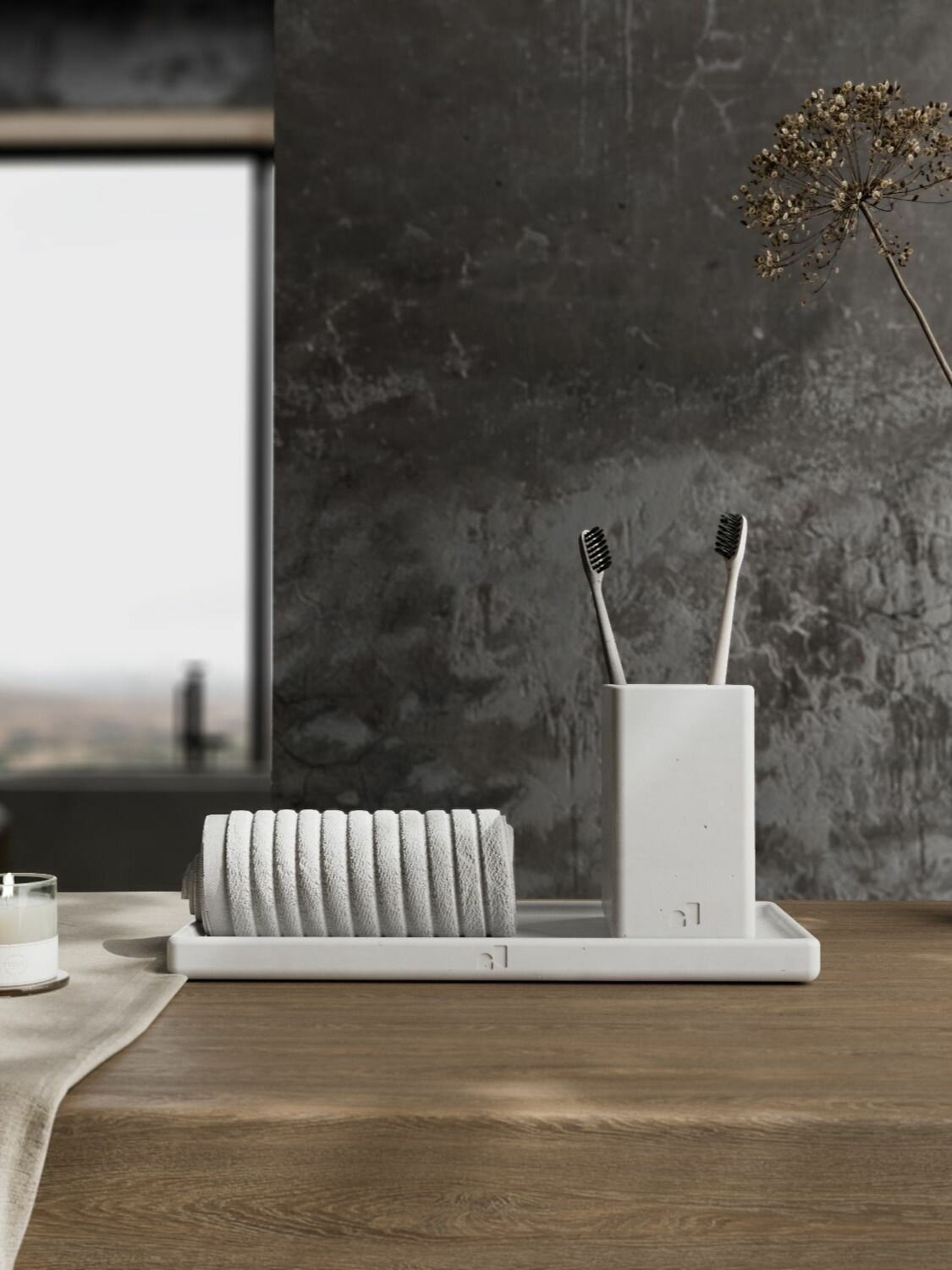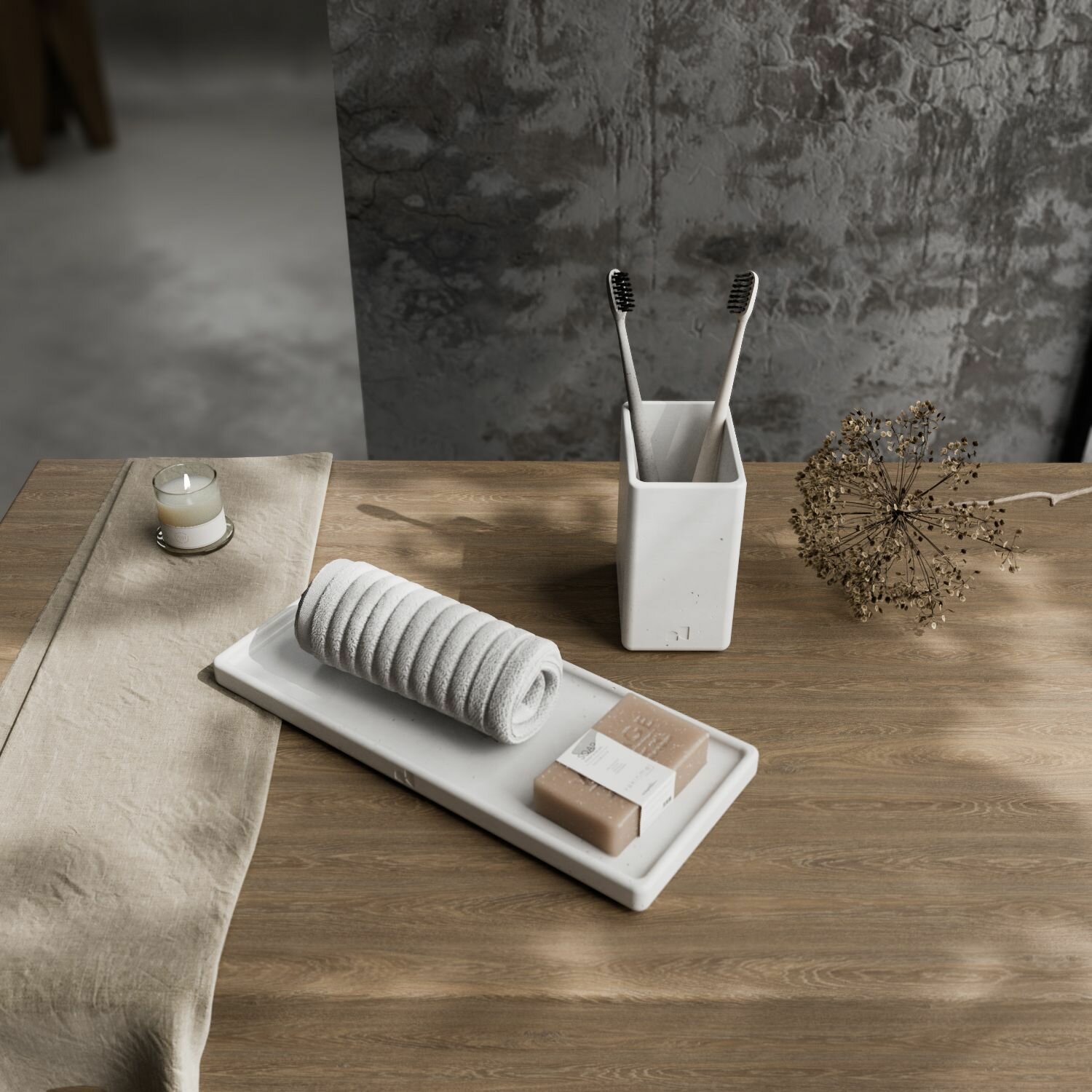 Набор аксессуаров для ванной комнаты есть в каждой локации. Где-то незаметно стоит в углу, где-то на самом видном месте, куда неглядя можно дотянуться. Представьте, что едва проснувшись утром, вы завариваете кофе и заходите в ванную комнату. В большом зеркале видите свое утреннее отражение, предметы интерьера, небольшой и аккуратный набор Oxford для ванной комнаты. Выполненный компанией de coore из архитектурного бетона ручной работы, исполненный с трепетом для вашего быта поутру в ванной комнате или незадолго до сна перед принятием горячей ванны после рабочего или насыщенного событиями вечера.