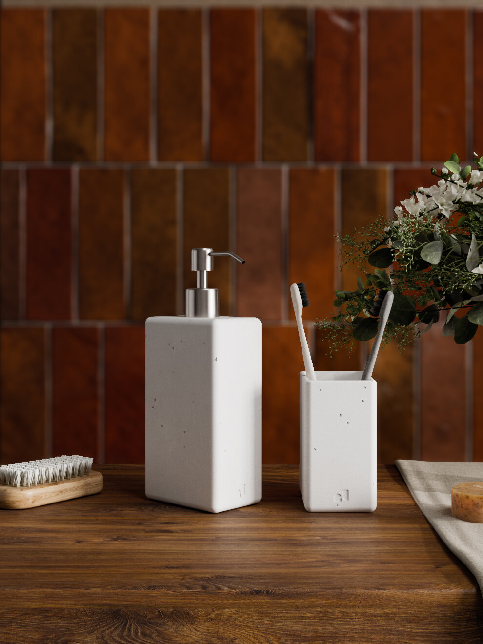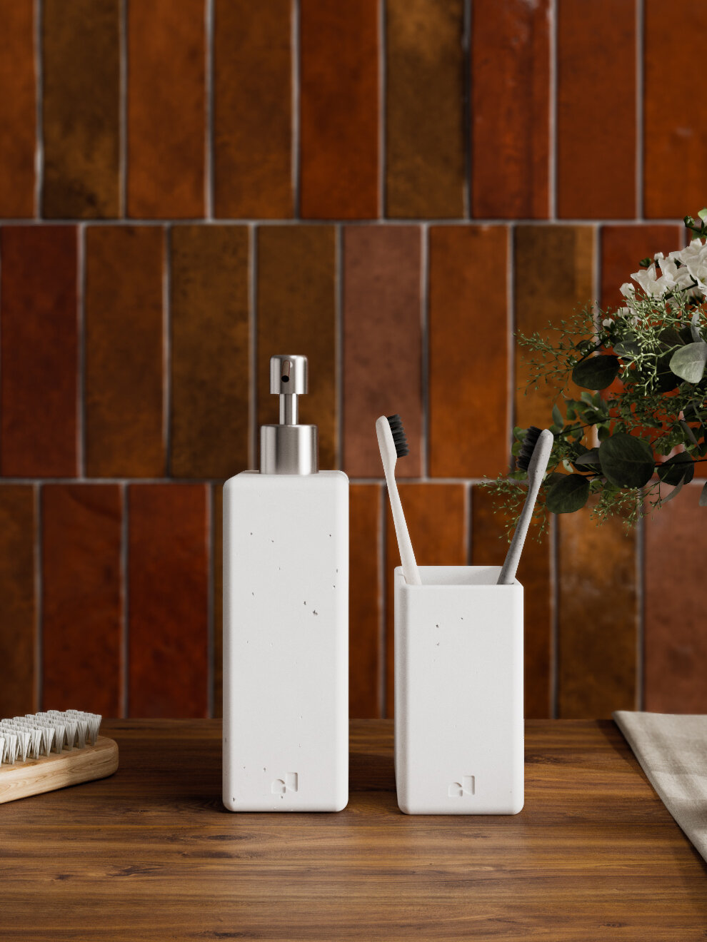 Набор аксессуаров для ванной комнаты «Oxford», белый матовый, 2 предмета: дозатор 250 мл, стакан под зубные щетки/пасту