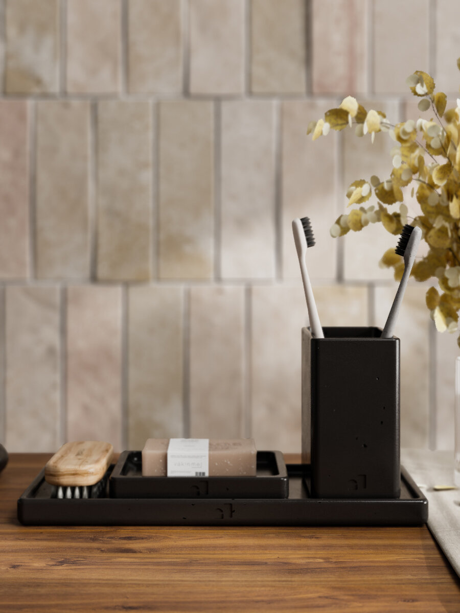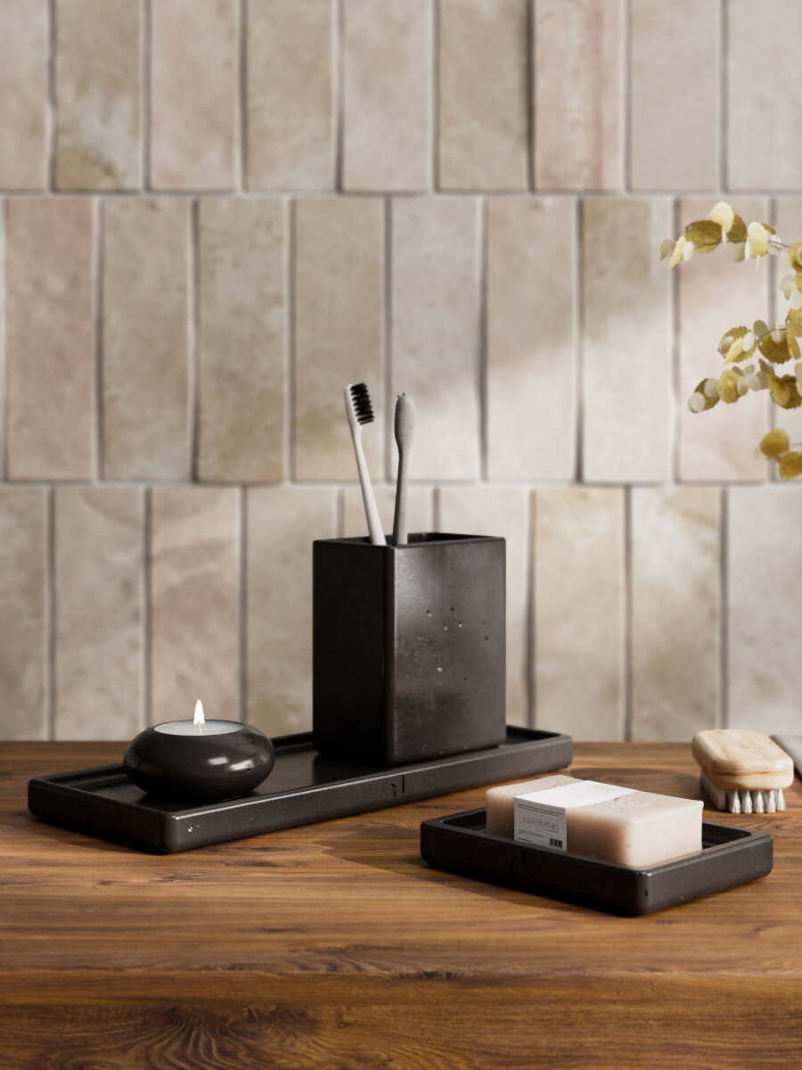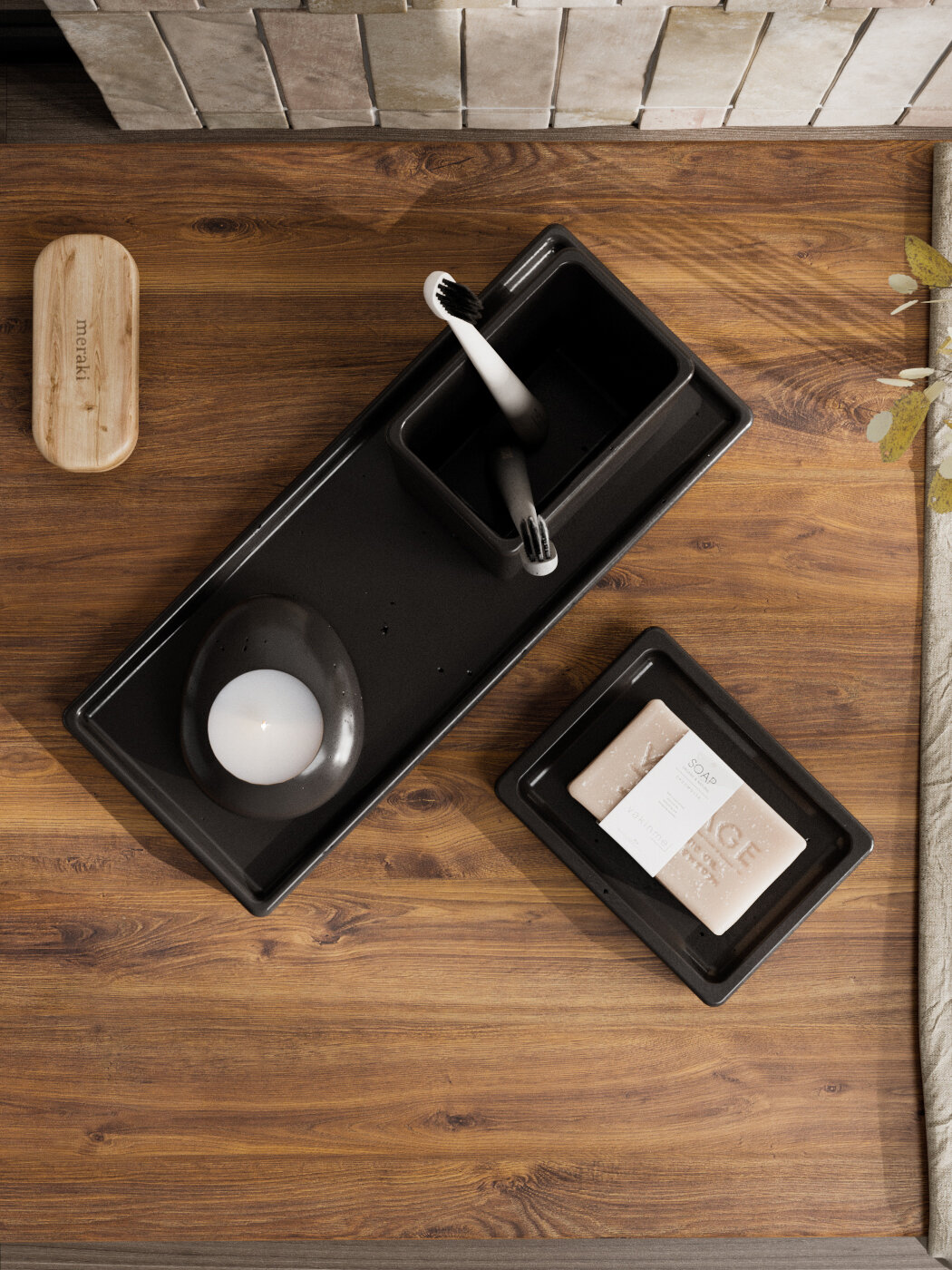 Набор аксессуаров для ванной комнаты «Oxford», черный глянцевый: стакан под зубные щетки/пасту, мыльница, поднос