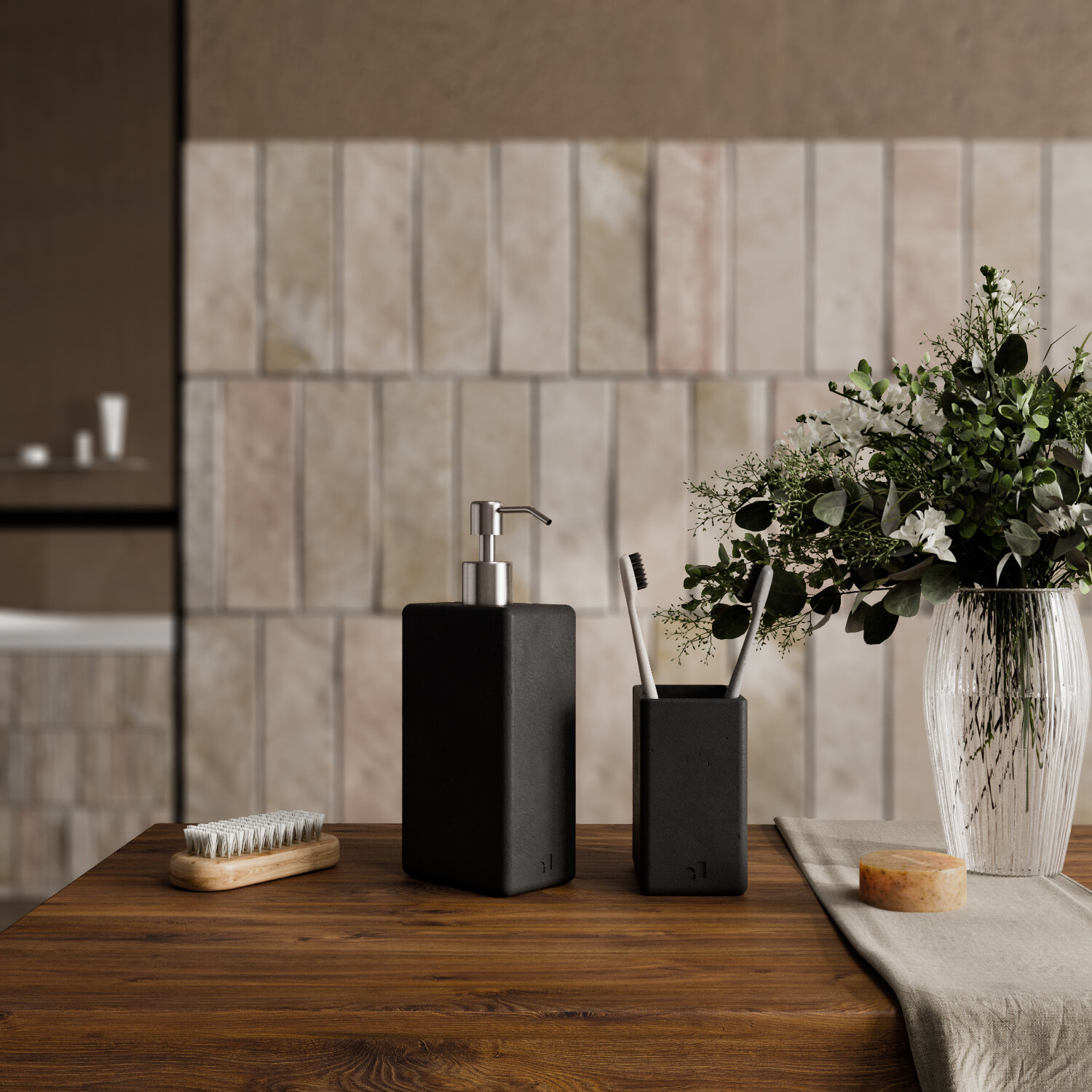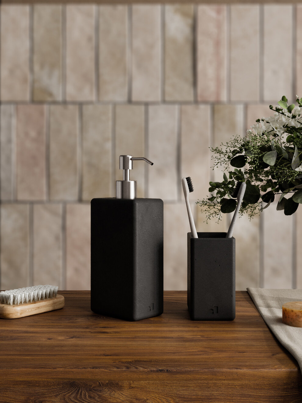 Каждое изделие комплекта аксессуаров для ванной комнаты покрыто специальным водоотталкивающим лаком, а также в комплекте идут силиконовые накладки. Ручная работа и материал предполагают собой возможное наличие пор на изделиях, незначительные расхождения в размерах и уникальный рисунок пигмента в изделии. Это не в коем случае не брак! Изделие выдержит повреждения, неловкое столкновение, спонтанные переезды, постоянное использование. Каждый предмет для ванной комнаты можно приобрести как вместе, так и отдельно. Стакан для зубных щёток и пасты, контейнер для ватных палочек и дисков или для любых небольших важных для вас вещей, мыльница, дозатор для любимого жидкого мыла. Мы упакуем его так, что изделие приедет к вам в идеальном состоянии, даже если ему предстоит проехать в рюкзаке курьера долгие километры, пересаживаться из одной машины в другую, в теплом климате или в суровые морозы. Открыв коробку вы увидите именно то, чего ожидали. Компания de coore продумала все необходимые мелочи для вашей красивой жизни.