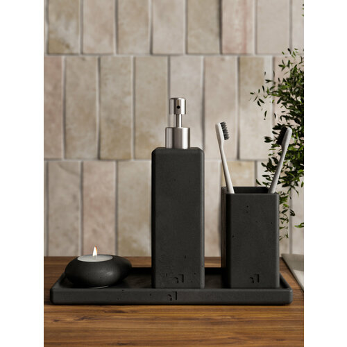 Набор аксессуаров для ванной комнаты «Oxford», черный матовый: дозатор 250 мл, стакан под зубные щетки/пасту, поднос: сравнение цен, характеристики, фото, актуальное наличие и цены.