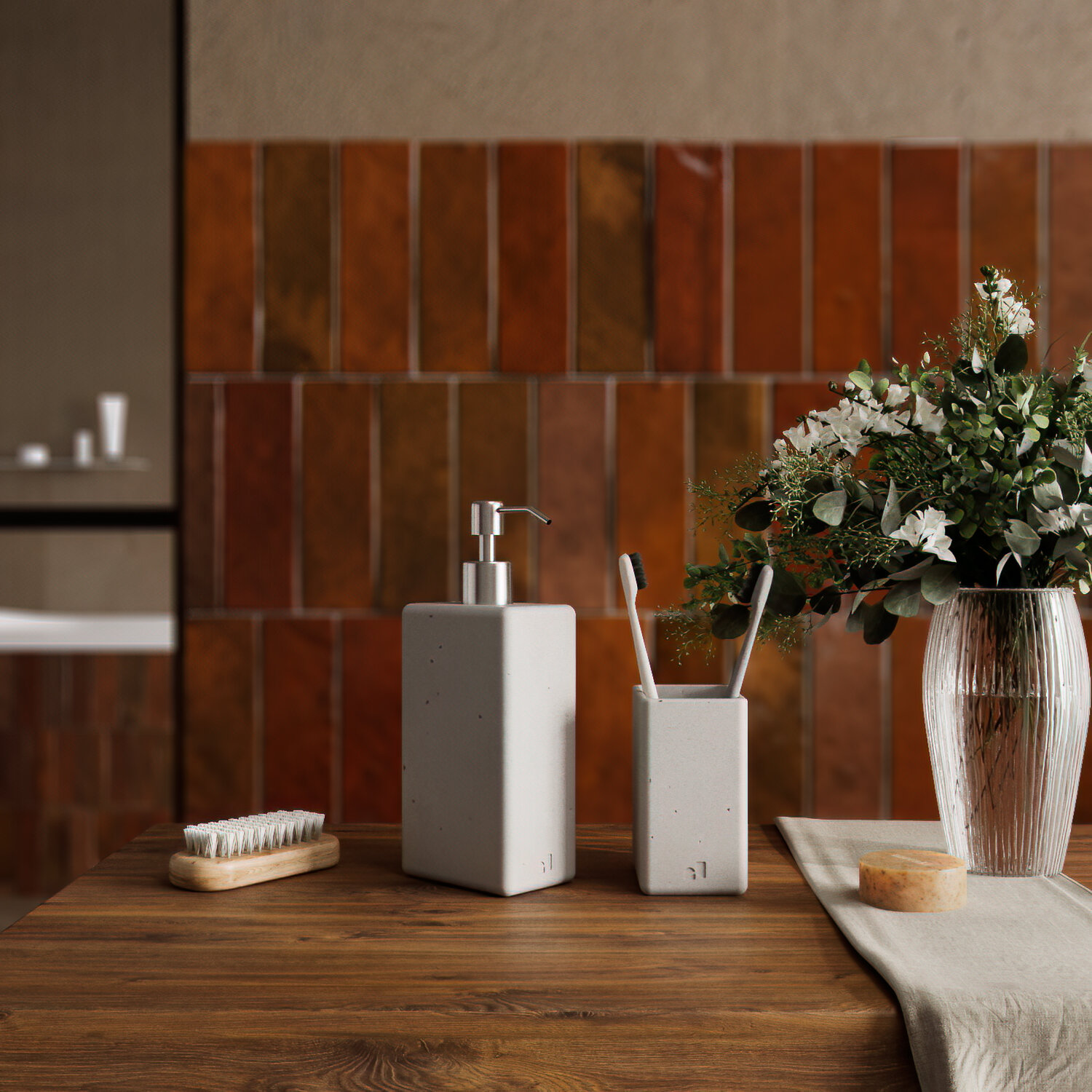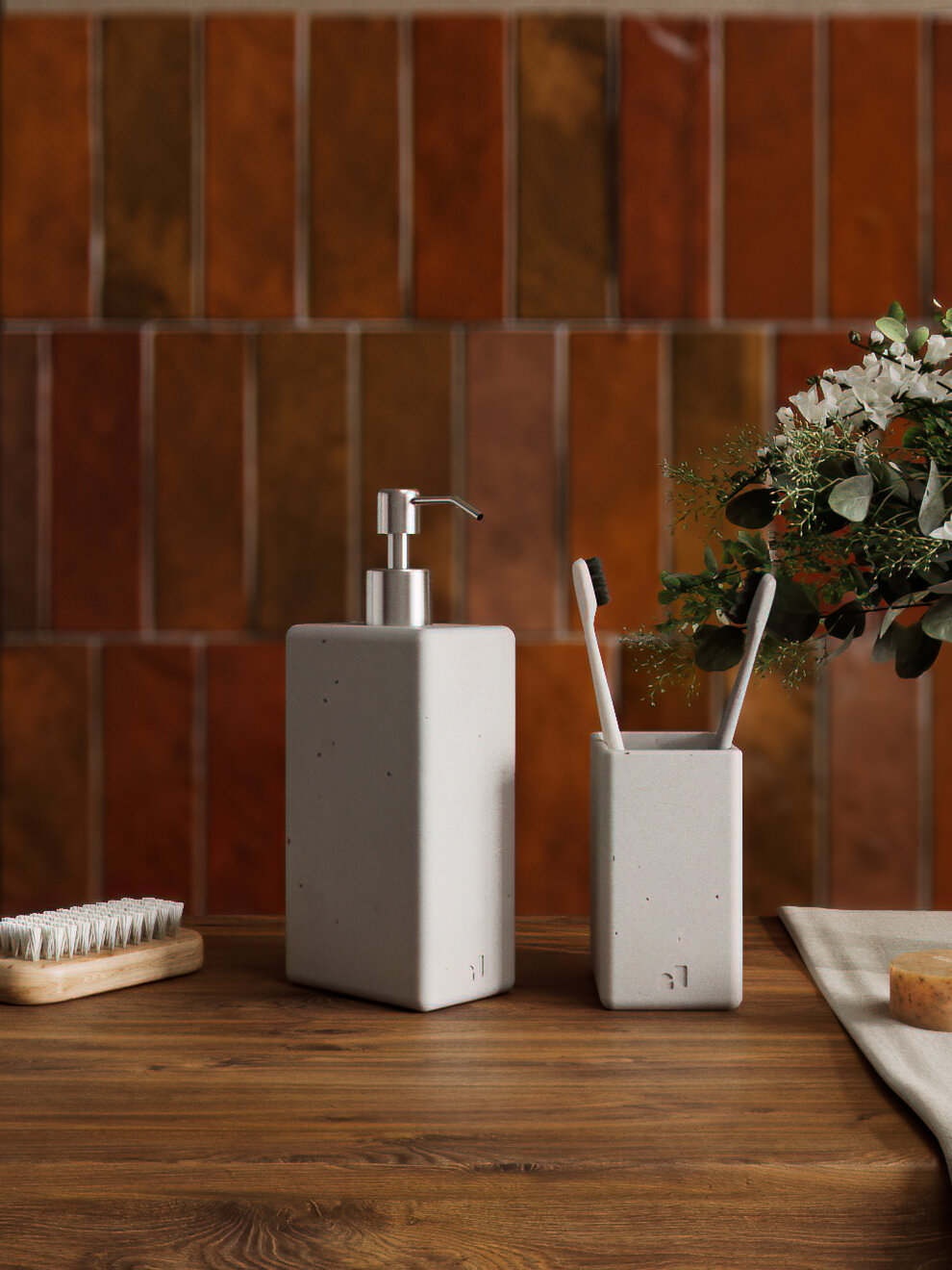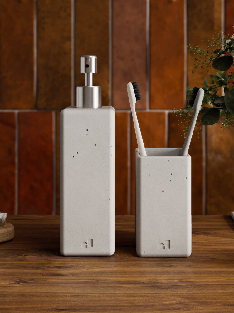 Набор аксессуаров для ванной комнаты «Oxford», серый матовый, 2 предмета: дозатор 250 мл, стакан под зубные щетки/пасту