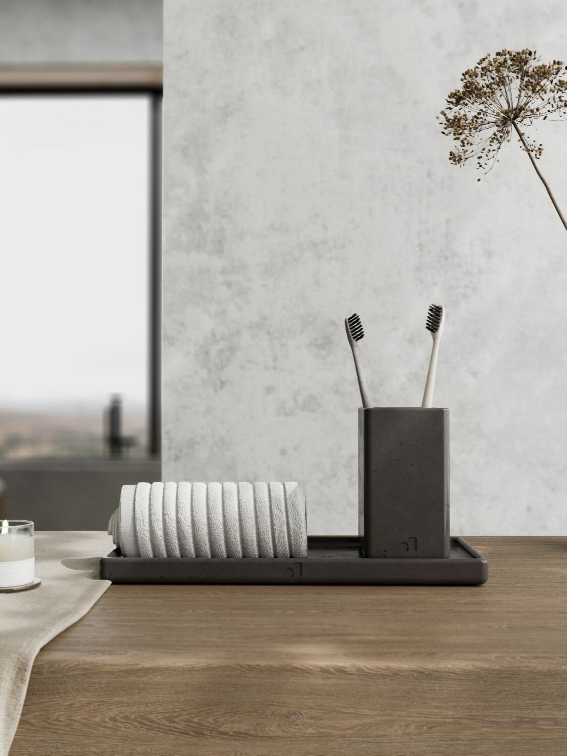 Набор аксессуаров для ванной комнаты «Oxford», темно-серый глянцевый, 2 предмета: стакан под зубные щетки/пасту, поднос
