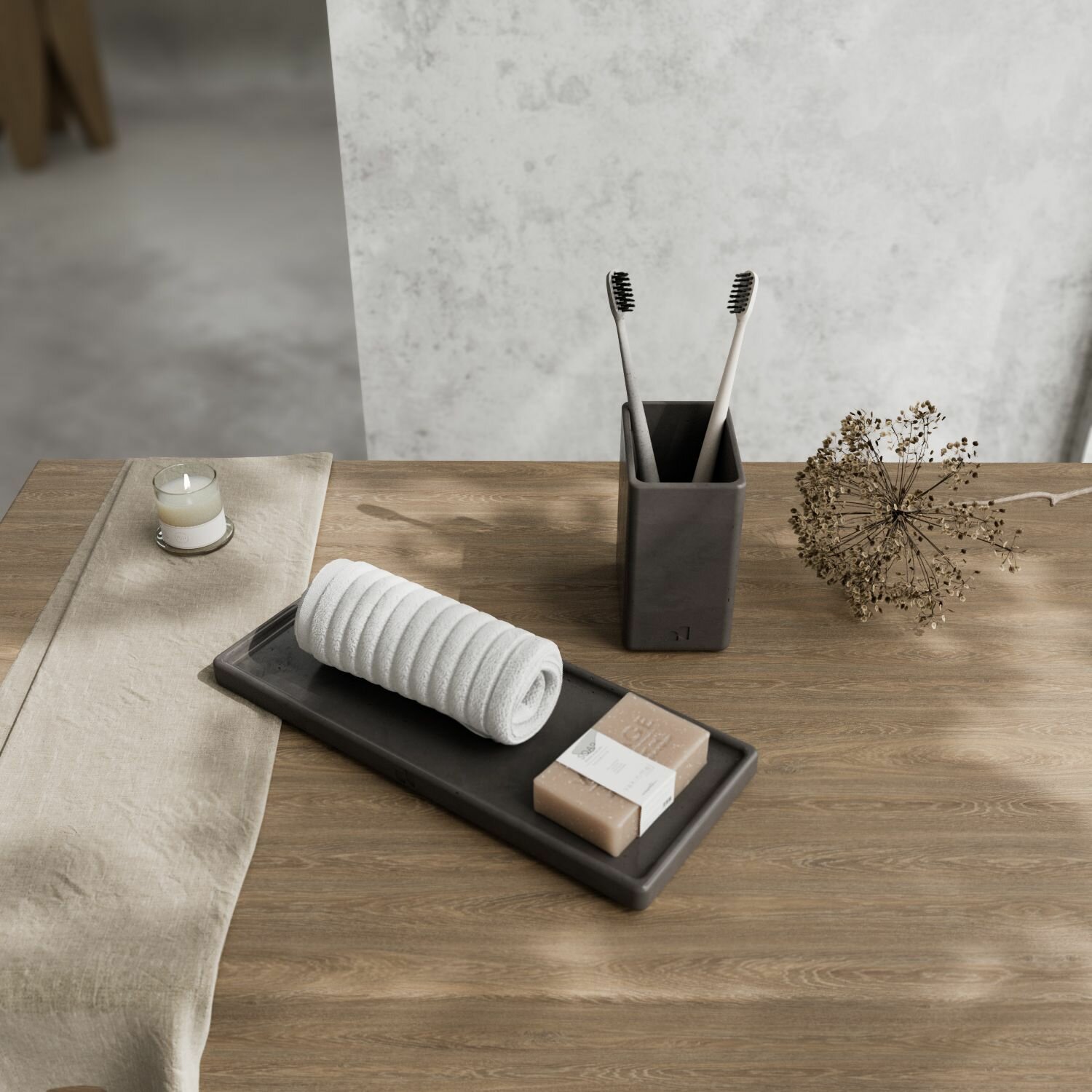 Купить Набор аксессуаров для ванной комнаты «Oxford», темно-серый глянцевый, 2 предмета: стакан под зубные щетки/пасту, поднос с доставкой по всей России.