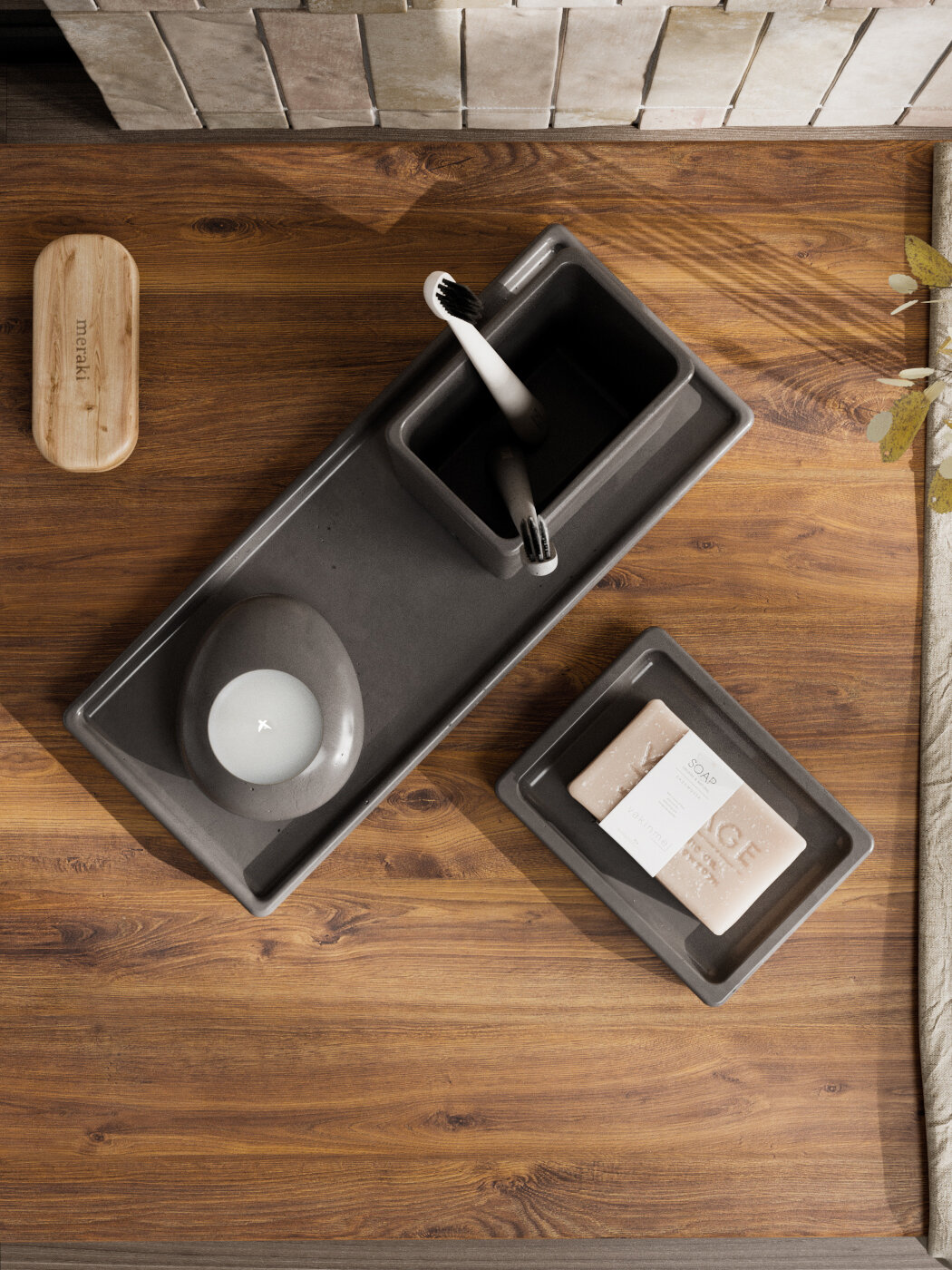 Набор аксессуаров для ванной комнаты «Oxford», темно-серый глянцевый: стакан под зубные щетки/пасту, мыльница, поднос