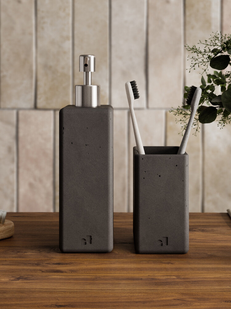 Набор аксессуаров для ванной комнаты «Oxford», темно-серый матовый: дозатор 250 мл, стакан под зубные щетки/пасту