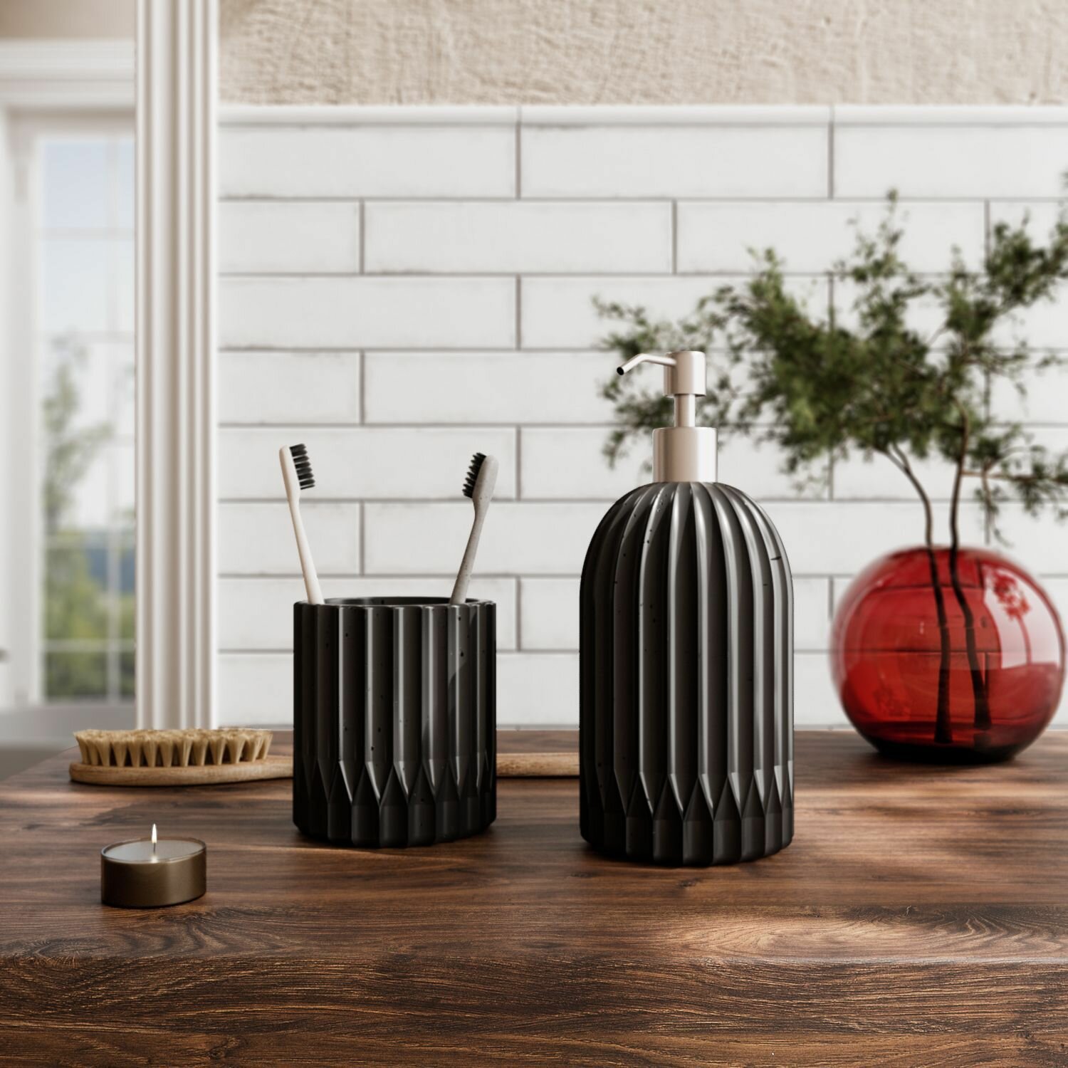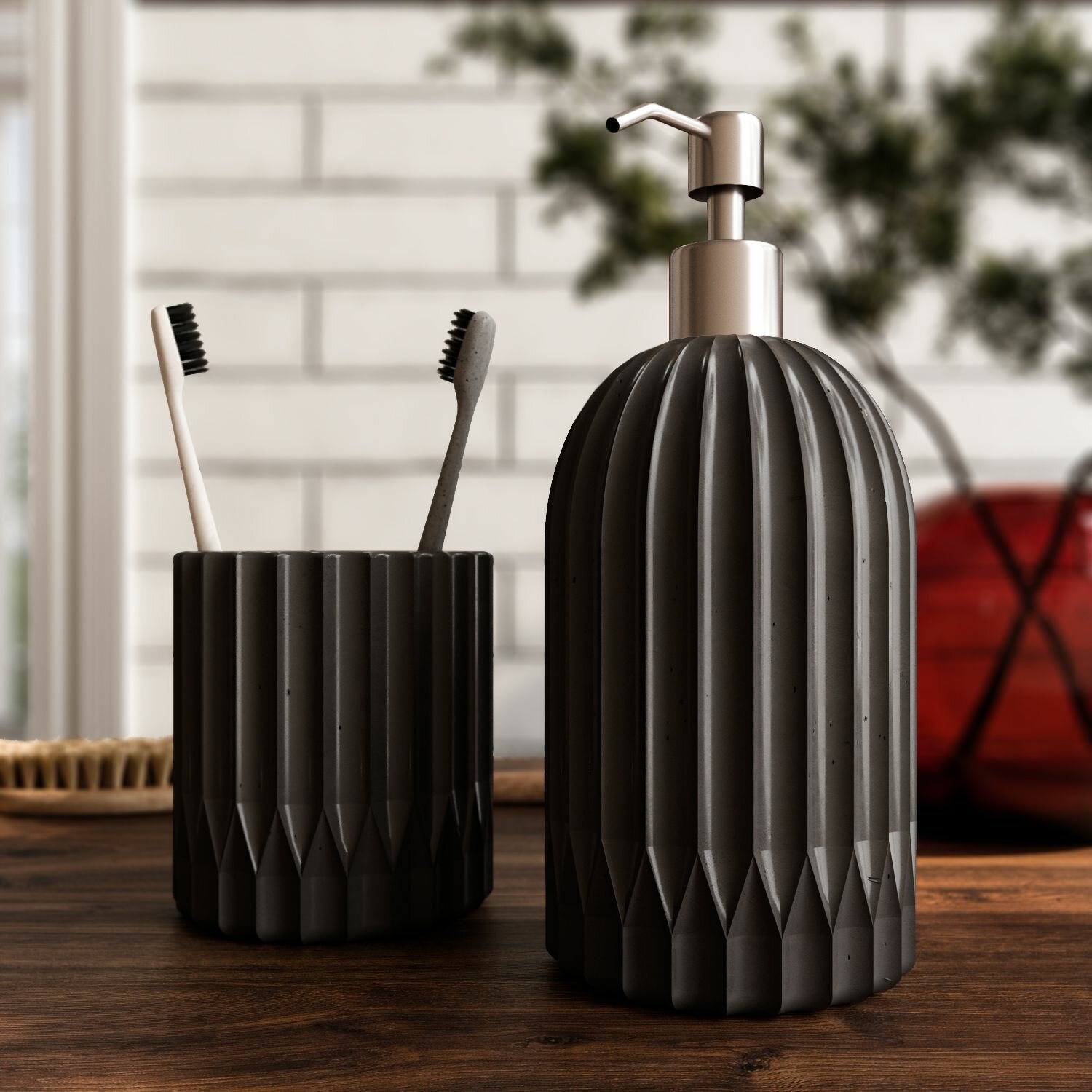 Стакан для зубных щёток и пасты, контейнер для ватных палочек и дисков или для любых небольших важных для вас вещей, мыльница, дозатор для любимого жидкого мыла.