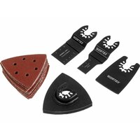 Набор для многофункционального инструмента WORTEX (1335554) имеет универсальную систему крепления OQIS и подходит для работы реноваторов WORTEX, MAKITA, DREMEL, RIDGID, Mastercraft, SKIL, Milwaulkee, DEWAULT и других. Поможет справиться с такими задачами как: подрезка дерева, пластика, дерева с гвоздями, шлифовкой, зачисткой поверхностей от краски, лака и других напольных покрытий. Глубина пропила пильных полотен: 25, 30 мм, ширина пропила - 20, 35 мм. Состав набора: - полотно пильное 30х20 мм, материал - 60Mn steel; - шабер, материал - нержавеющая сталь; - полотно пильное 25х35 мм, материал - Bi-Metal, M2; - шлифлист - 20 шт. - шлифподошва для реноватора, материал - пластик. Материал полотна (исполнение): BIM (биметалл), HCS (высокоуглеродистая сталь), Нержавеющая сталь (Inox), пластик. Посадка универсальная OQIS.