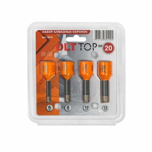Купить Набор алмазных коронок DLT TOP №20, Ø 6/8/10/12мм, арт. 3614 с доставкой по всей России. Набор алмазных коронок DLT TOP №20, Ø 6/8/10/12мм, арт. 3614: сравнение цен, характеристики, фото, актуальное наличие и цены.