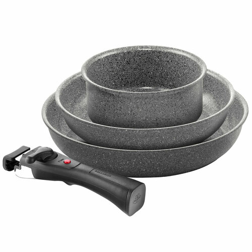 Набор алюминиевой посуды с антипригарным керамическим покрытием из ковша, сотейника и сковороды со съемной ручкой, серый, серия Torre, Ballarini, 1029409: сравнение цен, характеристики, фото, актуальное наличие и цены.