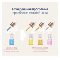 Благодаря такому богатому составу, набор ампул обеспечивает комплексный уход за кожей: увлажнение, выравнивание микрорельефа, лифтинг, омоложение, питание, сужение пор, тонизирование, улучшение цвета, успокаивающий эффект и от морщин.