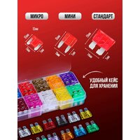 Набор поставляется в удобном ПВХ кейсе-футляре для хранения и включает в себя 3 размера: стандартный – 44 штуки, мини - 28 штук и низкопрофильный мини - 28 штук. В комплекте также идут удобные щипцы, что делает замену проще и быстрее. Идеально подходит для машины, RV, грузовика, мотоцикла, лодки и даже самолета.