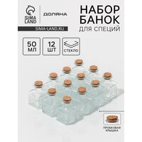 Купить Набор баночек для специй Доляна «Парфе», 50 мл, 4.5×4.5×6.8 см, с пробковой крышкой, 12 шт, стекло с доставкой по всей России.