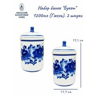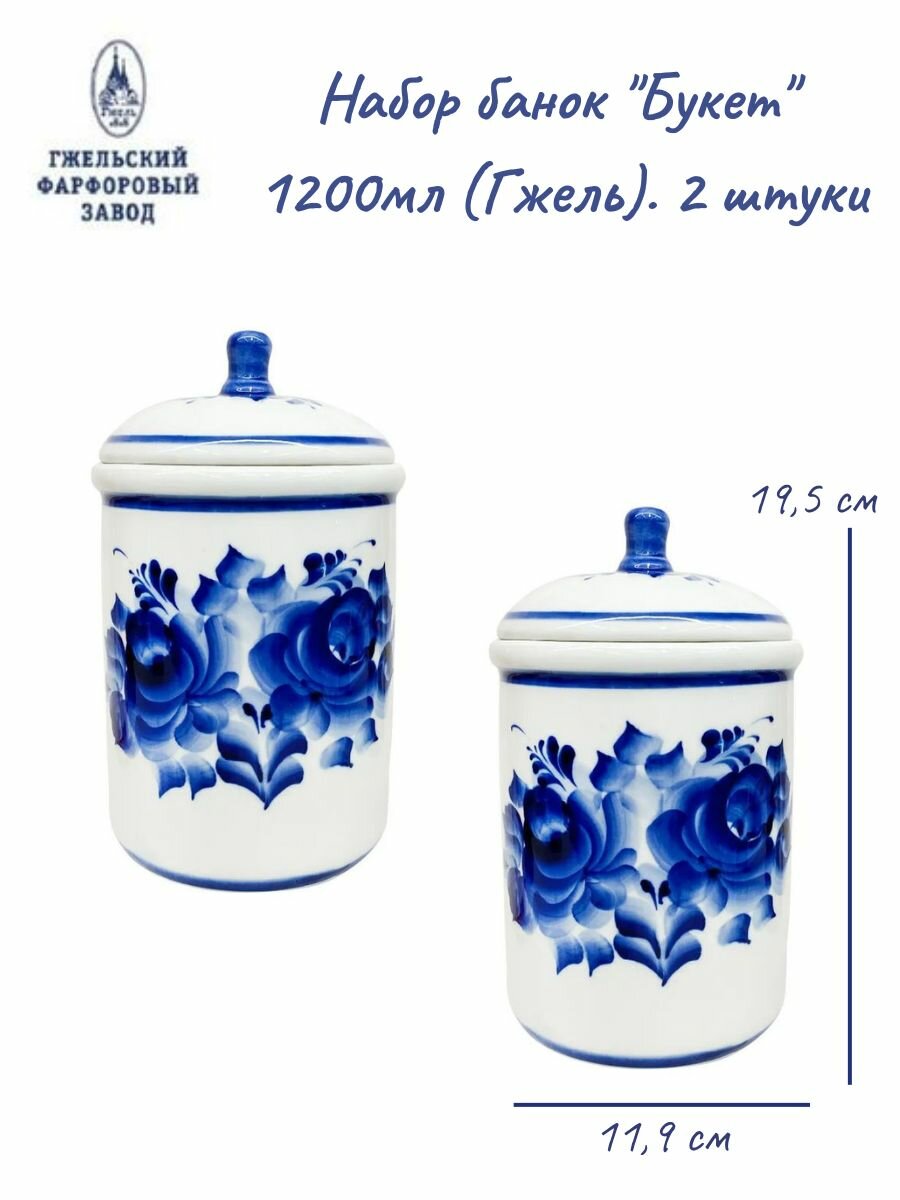 Набор банок "Букет" 1200мл (Гжель), комплект 2 штуки.