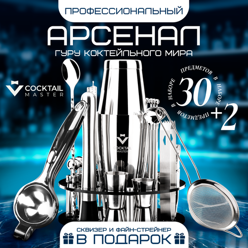 Купить Набор бармена для приготовления коктейлей из 30 предметов «Коктейль Мастер Гуру» с доставкой по всей России.