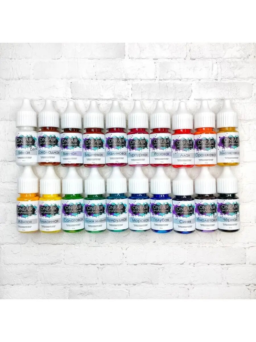 Профессиональная краска для аэрографии на ногтях OneAir Professional – Набор “Профи”, 20 цветов по 10 мл