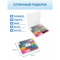 Сам органайзер также надежно закрывается на защелки. Цвета бисера не повторяются, популярные цвета: белый, чёрный и жемчужный входят в состав данного набора.
