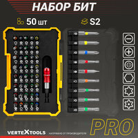 Набор бит для шуруповерта VertexTools PRO S2 50 шт, магнитный держатель
