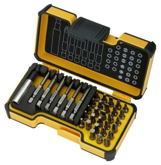 Состав набора включает широкий ассортимент: биты 25 мм формата SL (4.5×0.6 мм, 5.5×0.8 мм, 6.5×1.2 мм), HEX (3, 4, 5 мм), крестовые PH0, PH1, PH2, PH3, PZ1, PZ2, PZ3, а также TORX Tx5, Tx6, Tx7, Tx8, Tx10, Tx15, Tx20, Tx25, Tx30, Tx40. Дополнительно в комплект входят удлиненные биты 50 мм: PZ1, PZ2, PH2, а также TORX Tx20, Tx25, Tx30. Такой выбор делает набор максимально универсальным и позволяет решать широкий спектр задач — от сборки мебели и проведения электромонтажных работ до авторемонта и обслуживания техники.