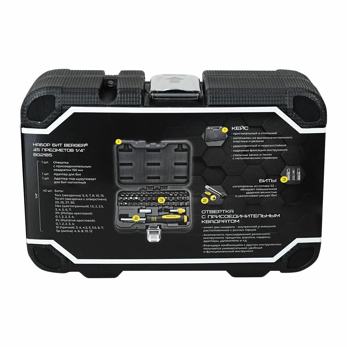 Набор бит с отверткой BERGER 45 предметов «фюрт»: сравнение цен, характеристики, фото, актуальное наличие и цены.
