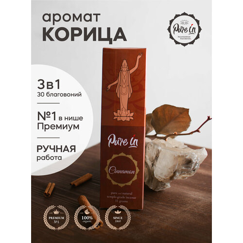 Набор благовоний корица от PURE-IN из Индии, 3в1. Натуральные индийские ароматические палочки премиум класса, 30шт. Для дома и медитации. Ритуалов и практик