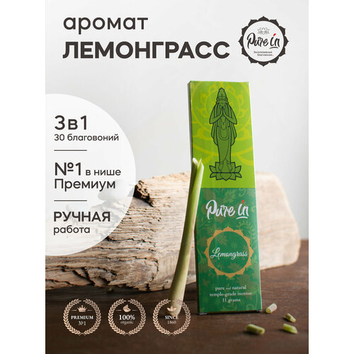 Набор благовоний лемонграсс от PURE-IN из Индии, 3в1. Натуральные индийские ароматические палочки премиум класса, 30шт. Для дома и медитации. Ритуалов и практик