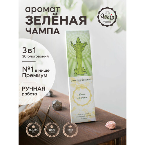 Зеленая Чампа -целебный аромат с медовыми сухими нотами хвойного леса. Благовония сделаны из индийской ели и часто применяются в ароматерапии.