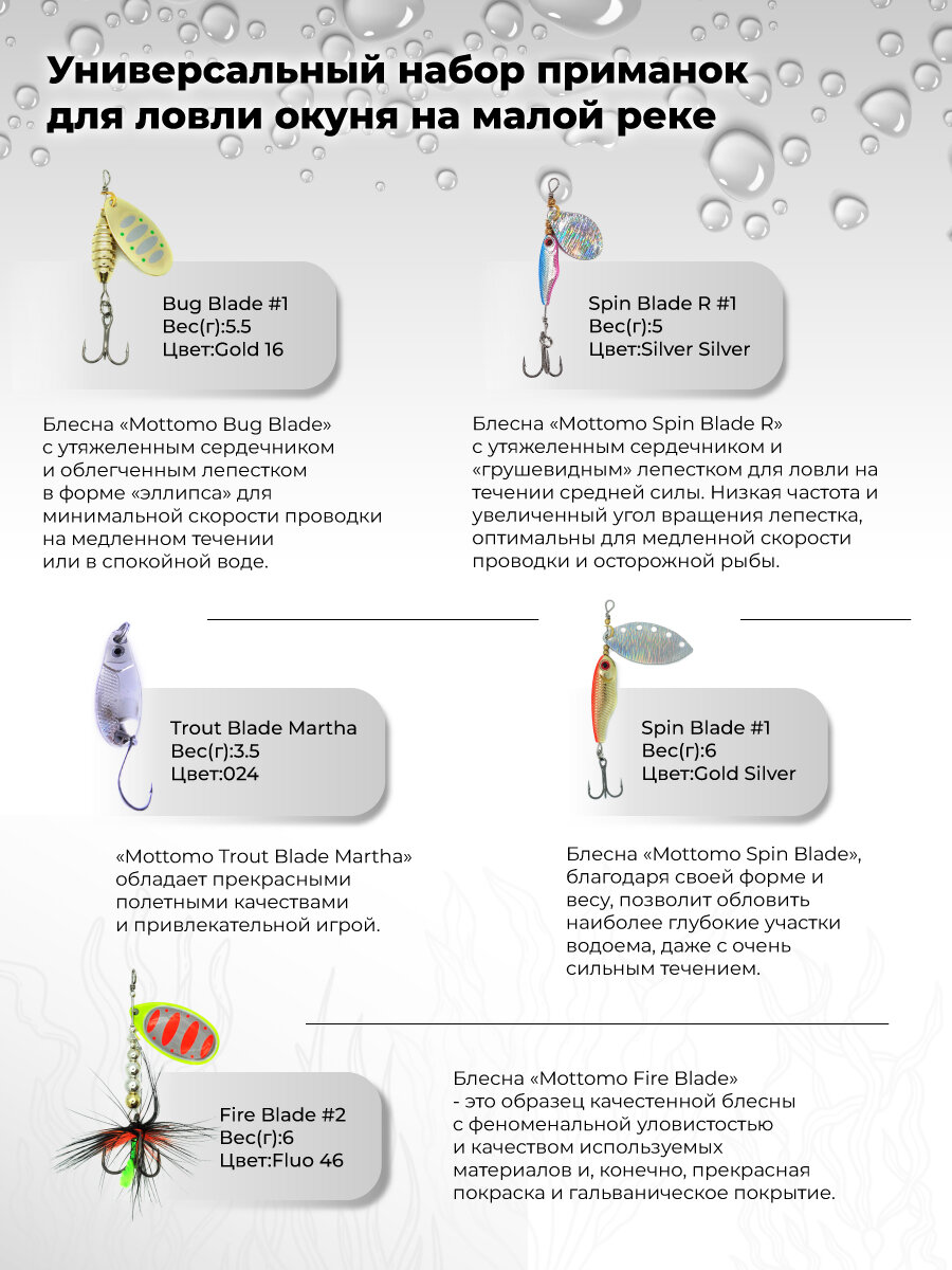 Набор блесен рыболовных для спиннинга Mottomo Perch Kit №3 (Small River) Окунь/мал. река: сравнение цен, характеристики, фото, актуальное наличие и цены.