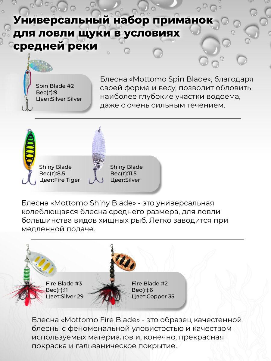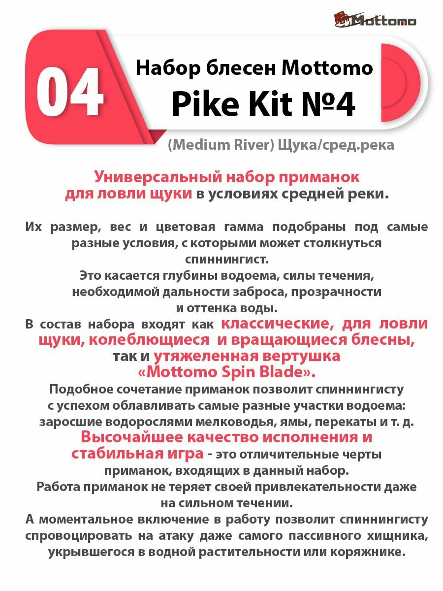 Набор блесен рыболовных для спиннинга Mottomo Pike Kit №4 (Medium River) Щука/сред. река: сравнение цен, характеристики, фото, актуальное наличие и цены.