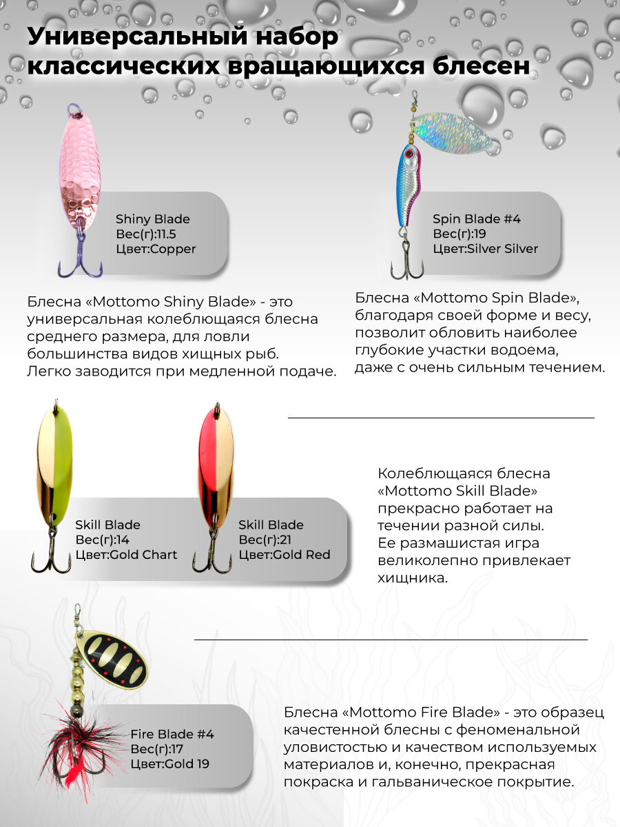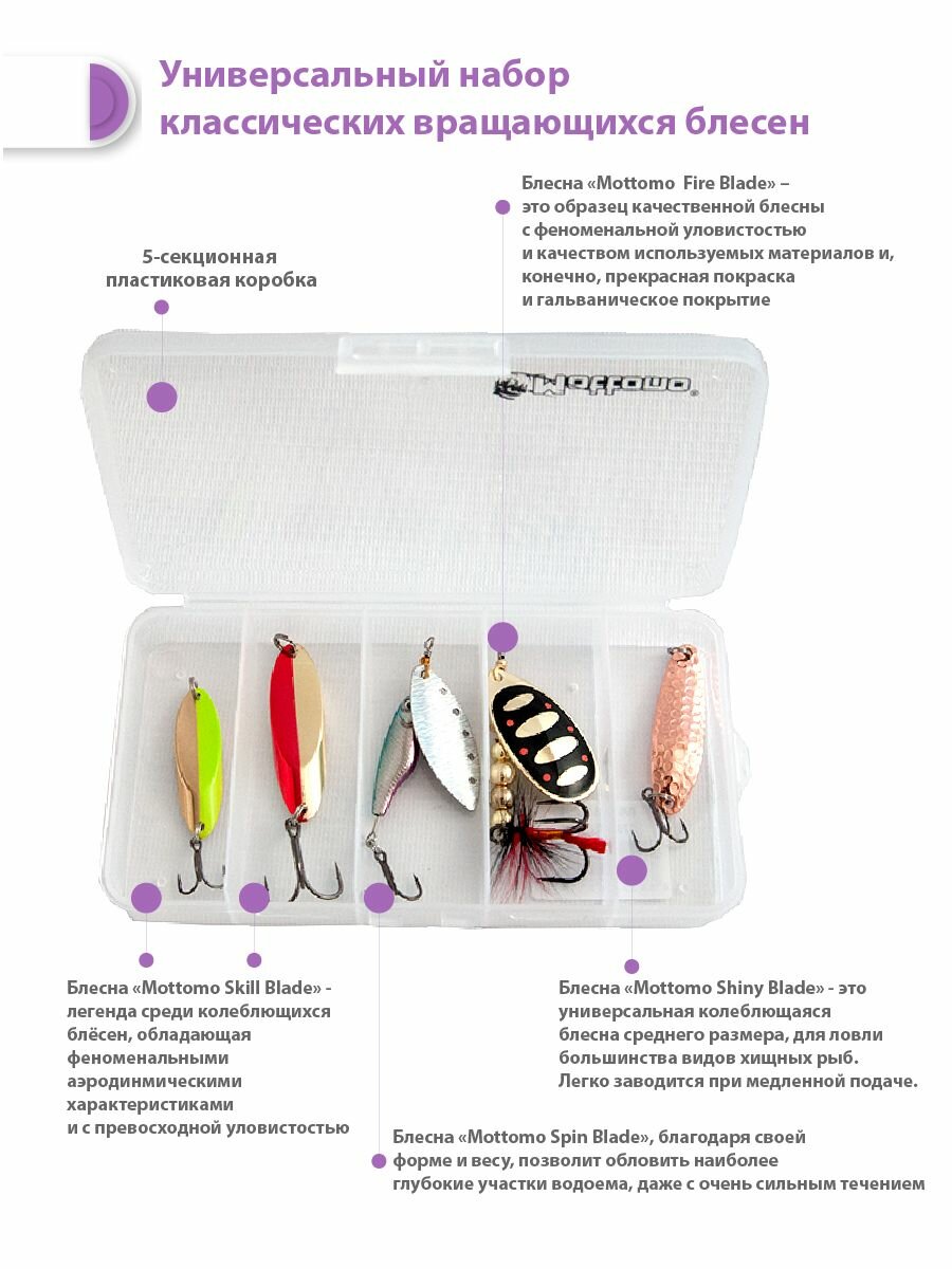 Купить Набор блесен рыболовных для спиннинга Mottomo Universal Kit №3 Универсальный на щуку для форели с доставкой по всей России.