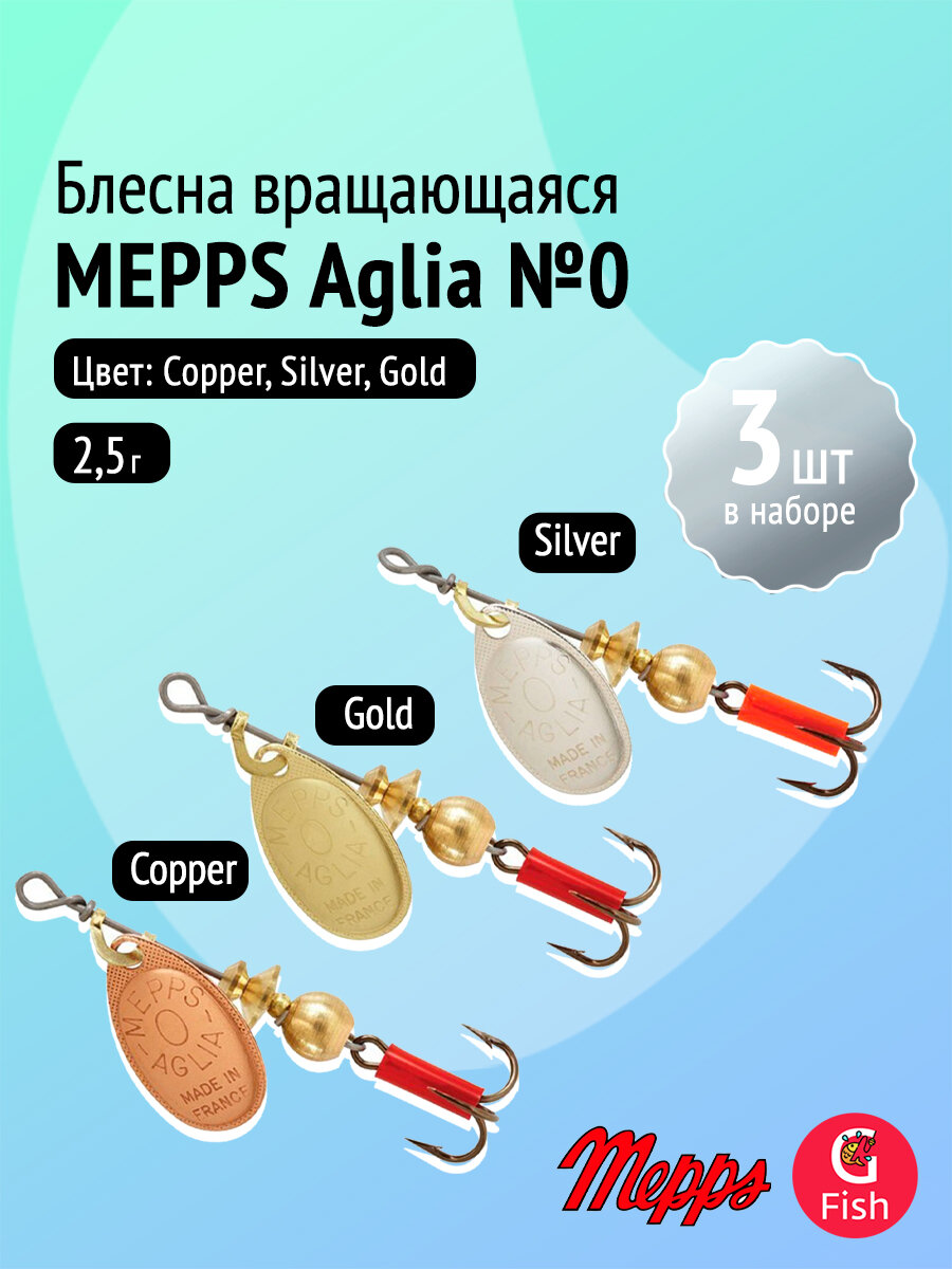 Набор блесен вертушек Mepps AGLIA №0, 3 шт: Gold, Copper, Silver 2,5 г для ультралайта: сравнение цен, характеристики, фото, актуальное наличие и цены.