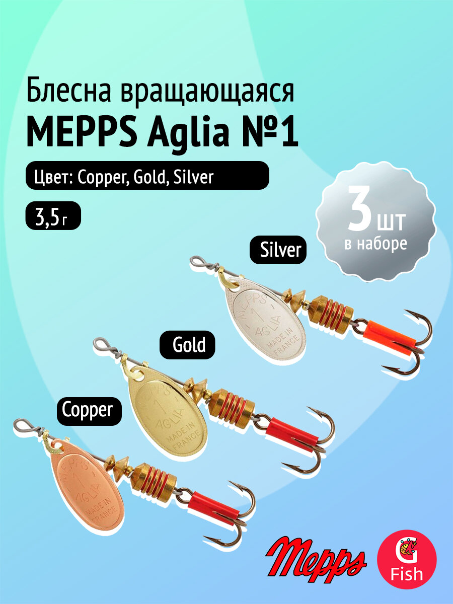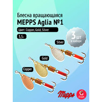 Купить Набор блесен вертушек Mepps AGLIA №1, 3 шт: Gold, Copper, Silver 3,5 г для ультралайта с доставкой по всей России.