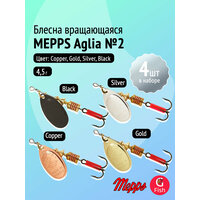 Купить Набор блесен вертушек Mepps AGLIA №2, 4 шт: Gold, Copper, Silver, Black 4,5 г для ультралайта с доставкой по всей России.