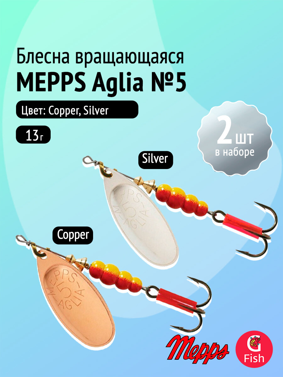 Купить Набор блесен вертушек Mepps AGLIA №5, 2 шт: Copper, Silver 13 г (Щука, окунь, форель) с доставкой по всей России.