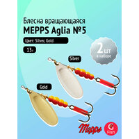 Купить Набор блесен вертушек Mepps AGLIA №5, 2 шт: Silver, Gold 13 г (Щука, окунь, форель) с доставкой по всей России.