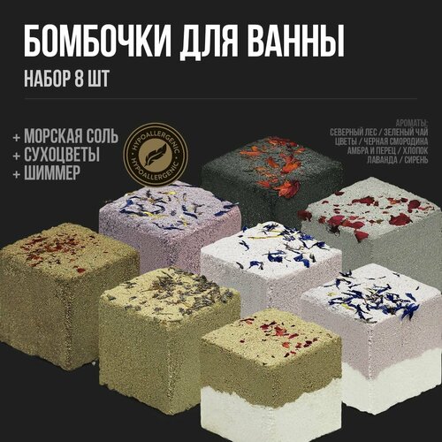 Это не просто бомбочки для ванны, это невероятное погружение в роскошь и удовольствие. Эти кубические бомбочки размером 5х5х5 см представляют собой идеальное сочетание минимализма и элегантности. Их пастельная цветовая гамма и стильный дизайн привлекут внимание ценителей изысканности. Натуральный состав без излишеств превращает обычную ванну в настоящий релаксационный СПА опыт. В каждой бомбочке содержится морская соль, сухоцветы и мерцающий шиммер, благодаря которому вода становится перламутровой, словно шелк, создавая атмосферу умиротворения и расслабления. Это необходимый шаг к заботе о себе, который помогает восстановить баланс после напряженного дня и подарить себе заслуженное внимание. Ароматы: