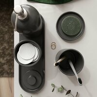 Набор аксессуаров для ванной комнаты есть в каждой локации. Где-то незаметно стоит в углу, где-то на самом видном месте, куда не глядя можно дотянуться. Представьте, что едва проснувшись утром, вы завариваете кофе и заходите в ванную комнату. В большом зеркале видите свое утреннее отражение, предметы интерьера, небольшой и аккуратный набор Bordeaux для ванной комнаты. Выполненный компанией de coore из архитектурного бетона ручной работы, исполненный с трепетом для вашего быта поутру в ванной комнате или незадолго до сна перед принятием горячей ванны после рабочего или насыщенного событиями вечера. Размеры:• Дозатор: 9x9x22.5см, 500мл• Стакан: 9x9x11см• Контейнер с крышкой: 9x9x12см• Мыльница: 13x13см Поднос: 33*11*2см Комплект принадлежностей для ванной представлен в трех спокойных, словно зимнее небо, цветах - Белый, словно тяжёлое одеяло вашей постели, с которой вы встали поутру - Серый, идеально подходящий под спокойные тона вашей ванной комнаты Темно - серый, универсальный, словно маленькое платье Коко Шанель для любого важного мероприятия; -Черный, словно звёздное небо в новогоднюю ночь. Каждое изделие комплекта аксессуаров для ванной комнаты покрыто специальным водоотталкивающим лаком, а также в комплекте идут силиконовые накладки.