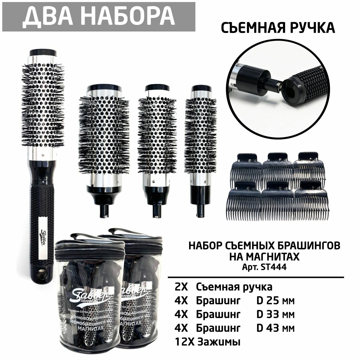 Набор. Брашинги Stavver Extra Hot на магнитах (D25, D33, D43)+6 зажимов. 2 набора.: сравнение цен, характеристики, фото, актуальное наличие и цены.