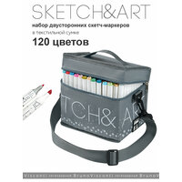 Высококачественные профессиональные маркеры «SKETCH&ART» для рисования, набросков, дизайнерских работ. В наборе 120 цветов - простор для творчества! Эргономичный трехгранный корпус маркера из полипропилена - легкий и ударопрочный. Плотно защелкивающиеся колпачки обеспечивают долгую сохранность чернил от высыхания, а рельефное нанесение в форме точек на их поверхность предотвращает скольжение руки при открывании. Маркер имеет два наконечника из износостойкого волокна - пулевидный с шириной линии 1 мм и скошенный, позволяющий варьировать ширину линии от 1 до 5 мм. Перманентные чернила на спиртовой основе не токсичны и быстро сохнут на поверхности, оставляя яркий след. А возможность многократно заправлять чернилами маркер – значительно продлевает срок его службы. Маркеры хорошо ложатся на бумагу разной фактуры и плотности. Более гладкая бумага дает больше простора для смешения цветов и создания градиентов. Маркеры можно использовать и для создания рисунков на стекле, и на светлом пластике, предварительно обезжирив их поверхность. Стойкость и яркость цвета гарантированы! Следы от маркеров легко отстирываются и отмываются с помощью моющих средств. Маркеры упакованы в текстильную сумку (170 x 120 x 165 мм) с регулируемым плечевым ремнем и внешнем кармане - удобно хранить и транспортировать. Вид упаковки: текстильная сумка-органайзер. Форма корпуса: трехгранная. Толщина линии письма: 1-5 мм. Набор двусторонних скетч-маркеров «Sketch&Art» – это 10 цветов с эффектом «металлик» и безграничные возможности для творчества, реализации идей с помощью линера и brash-кисти. Линер – универсальный для скетчинга инструмент, с помощью которого наносят контуры под маркеры или акварель, делают записи и наброски. Он дает четкий штрих и равномерную тонкую линию. Гибкий, легко принимающий прежнюю форму наконечник-кисть имеет возможность создавать линии различной ширины – от 1 до 3 мм в зависимости от угла и силы нажатия. Она идеальна для тех, кто желает преуспеть в скетчинге, леттеринге, каллиграфии. Маркер великолепно рисует на темных и цветных поверхностях, в том числе на черной бумаге. Его перманентные чернила на водной основе, быстросохнущие и светостойкие, что важно – нетоксичные. Эргономичный корпус трехгранной формы, вентилируемый колпачек. Пишущий узел: капиллярный + кисточка. Форма корпуса: круглая. Толщина линии письма: 1-3 мм.