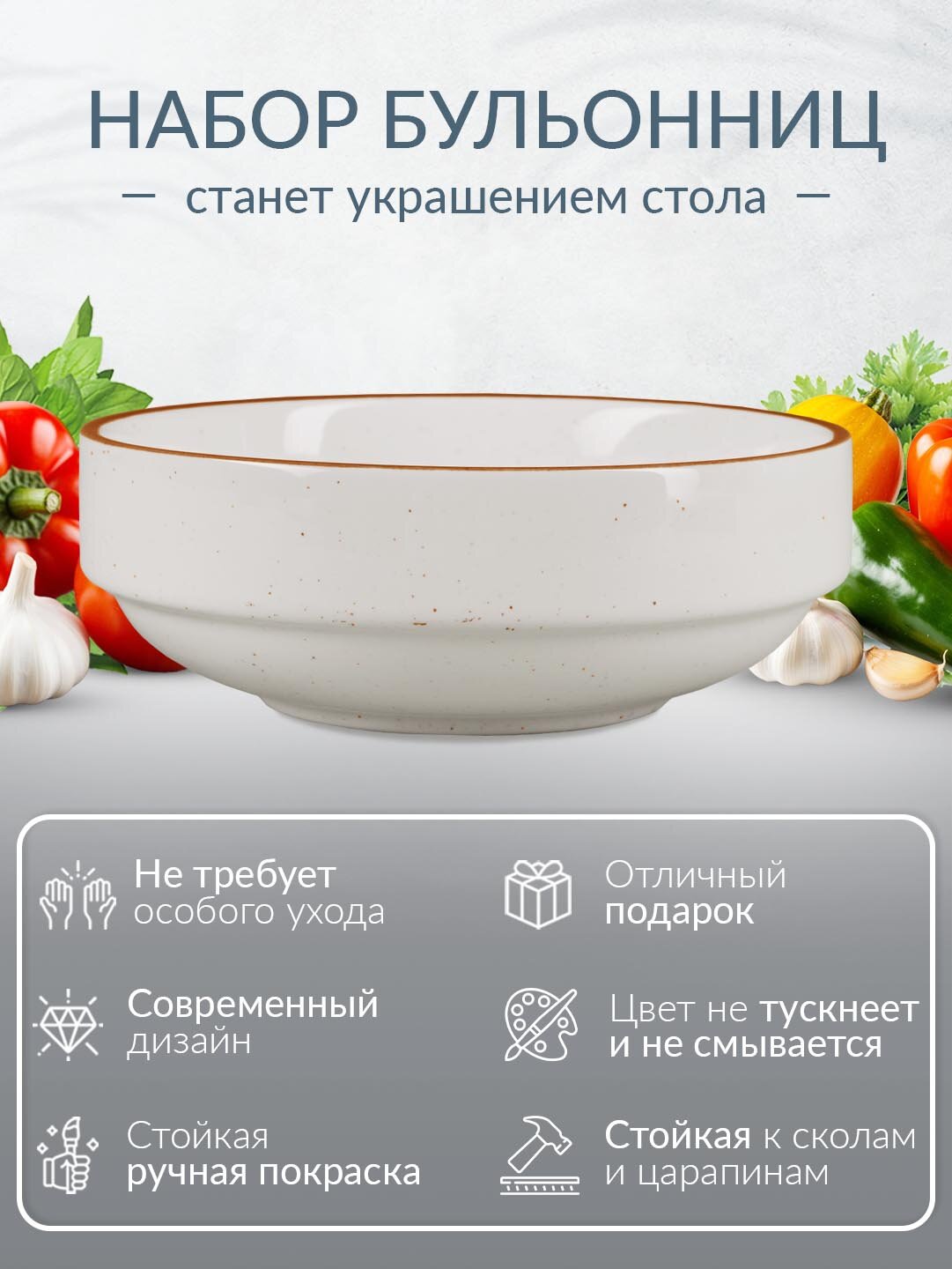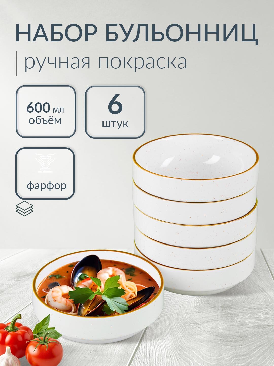 Купить Набор бульонниц Pomi d’Oro P290034, керамика, 6 штук, 600 мл, бежевые с доставкой по всей России.