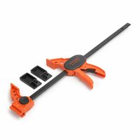 Струбцина предназначена для фиксации заготовки, обеспечивает быстрый и легкий зажим и может быть легко преобразована в распорный механизм. Контурная удобная рукоятка и быстроразъемный рычаг упрощают надежный захват, а эксклюзивная запатентованная функция позволяет соединять два зажима вместе, создавая зажим с более чем удвоенной открывающей способностью по сравнению с одним зажимом. Глубокие накладки обеспечивают максимальный охват заготовки.