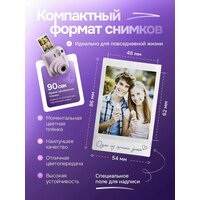 Особенности фотоаппарата включают зеркало для селфи, вспышку, автоматическую экспозицию, фокусировку и автоматическую фокусировку. Размер снимка составляет 62x46 мм, а тип элемента питания – батарейки.