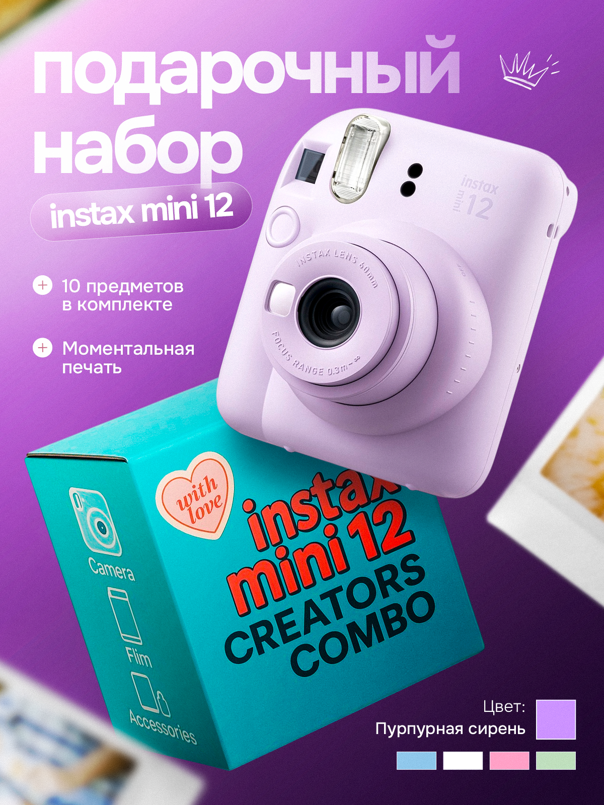 Купить Подарочный набор «Creators Combo» с фотоаппаратом моментальной печати Instax Mini 12 Фиолетовый с доставкой по всей России. Подарочный набор «Creators Combo» с фотоаппаратом моментальной печати Instax Mini 12 Фиолетовый: сравнение цен, характеристики, фото, актуальное наличие и цены.