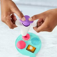 Миксер-пресс для пластилина позволит сформировать пирожные, печенья и другие сладости. На корпусе миксера – формы для создания украшений. В набор входят инструменты, включая «кондитерский» шприц и лопатку. Масса для лепки Play-Doh содержит пшеницу. С ней приятно работать, ведь она не прилипает к рукам. В комплекте: